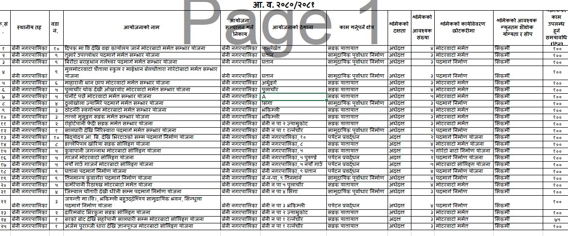 वेरोजगारलाई कम्तीमा १०० कार्य दिन रोजगार दिने भनिएको भएपनि बेनी नगरपालिाले एक चौथाई दिन मात्र रोजगारी दिएको छ ।
