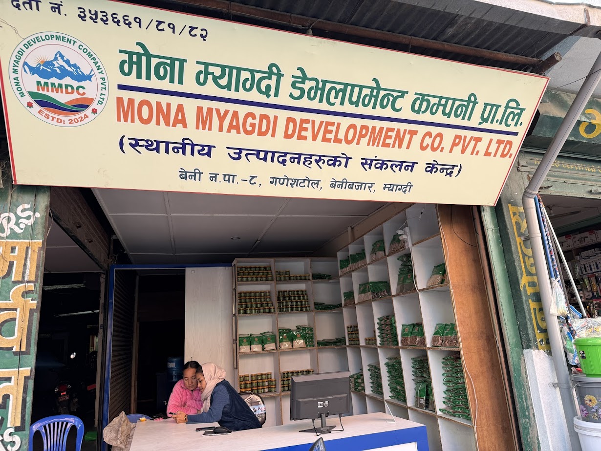 विश्व बजारमा माग र संभावना देखेका प्रवासीहरुले मिलेर रैथाने कृषी उत्पादन विश्व बजार पुर्याउन म्याग्दी प्रवासी नेपाली संघ (मोना)द्वारा स्थापित मोना म्याग्दी डेभलपमेन्ट कम्पनी प्रालिले ‘स्थानीय उत्पादन संकलन केन्द्र्र’ स्थापना गरेको छ ।